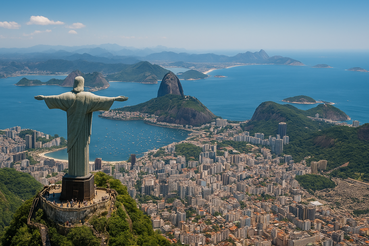 💚✨Prepare-se para se encantar com o Cristo Redentor, símbolo maior da fé e do acolhimento carioca, e com o Pão de Açúcar, onde o visual panorâmico do Rio de Janeiro tira o fôlego de qualquer visitante.